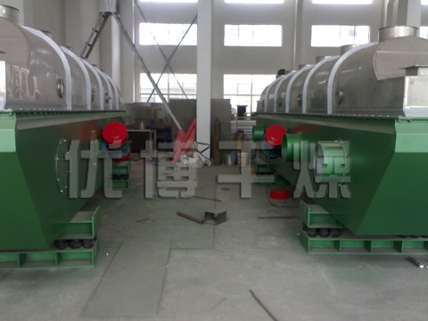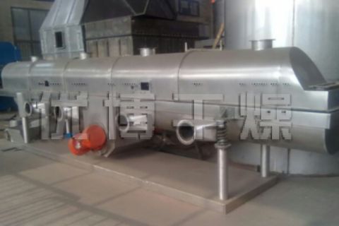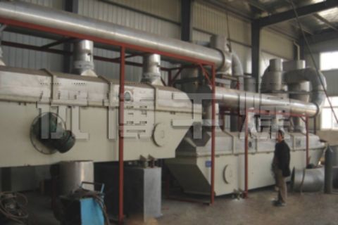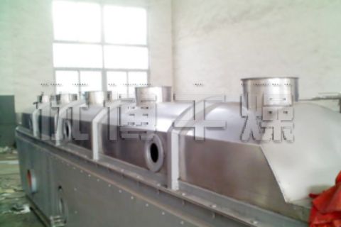 香料干燥機(jī)是由物料自進(jìn)料進(jìn)口進(jìn)入機(jī)內(nèi),在振動(dòng)力作用下,物料沿水平面流化床拋擲,向前連續(xù)運(yùn)動(dòng),熱風(fēng)向上穿過流化床同濕物料換熱后,濕空氣經(jīng)旋風(fēng)分離器除塵后由排風(fēng)1:3排出.干...